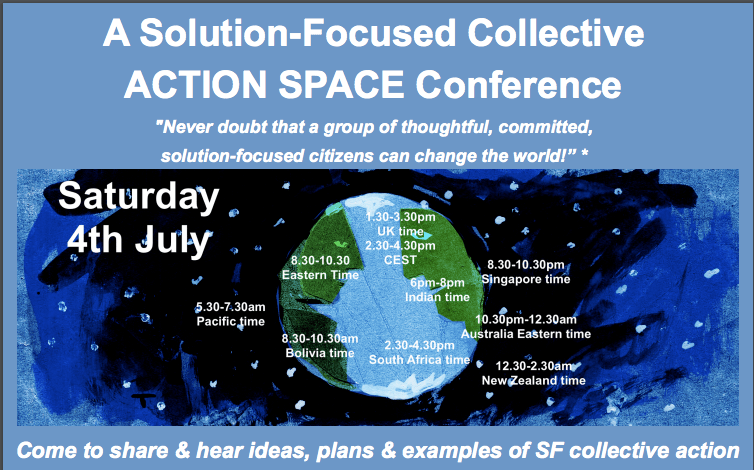 The Solution Focused Collective is a group of practitioners around the world (of which I am one), who share a belief in the potential of the solution focused approach to help in the creation of social change, towards greater social justice.